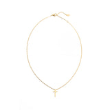 The Great Courage Women's Necklace is engraved with "courage" down the right side of the cross. The pendants are 0.5" long and are set on a 15" chain with a 2" extension. Available in natural and 18K gold-plated stainless steel.