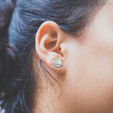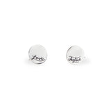 Eden's Love and Justice Post Earrings feature asymmetrical pendants engraved with 'Love' and 'Justice' which serve as a reminder of the power of these two qualities. The pendants are 0.4" in diameter. They are available in natural or 18K gold-plated stainless steel and are set on natural or 18K gold-plated 316 medical-grade stainless steel hooks.