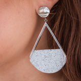 Eden's Desert Stone Earrings embody the resilience of young Burmese girls thriving in challenging conditions like desert flowers. These handmade earrings, measuring 2.6" by 1.6", are crafted with white stone-colored polymer clay and are set in 316 medical-grade stainless steel frame and post.