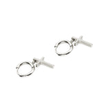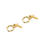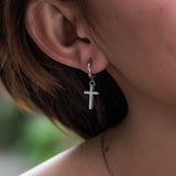 The Courageous Cross Earrings are engraved with "courage" down the right side of the cross. The pendants are 0.5" long and are set on 0.5" hinged huggie hoops. Available in natural and 18K gold-plated stainless steel and the huggie hoops are 316 medical-grade stainless steel.