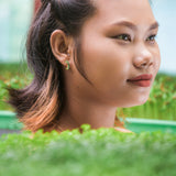 Inspired by Eden's innovative microgreens program, the Radicle Hoop Earrings symbolize growth and new beginnings. The 0.5" diameter hoops are 18K gold-plated brass set with emerald cubic zirconia and sit on 316-medical grade 18K gold-plated posts.