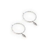1.2" 316 medical-grade stainless steel hoop with 925 sterling silver beads and feather pendant.