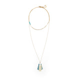 A layered necklace set featuring two complementary pieces: a 30” necklace with a 1.9” x 1.2” pendant accented with ocean-toned polymer clay, and a 17” rectangular-link chain adorned with genuine turquoise beads. Both include 1.3” extension chains and are crafted from 18K gold-plated stainless steel.