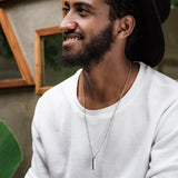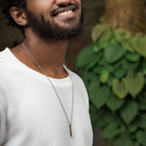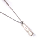 The 1" long pendant hanging from Eden's Steps to Freedom Necklace celebrates the steps David took to become free from human trafficking with engravings of the words "HOPE", "WAIT", "RISK", "SEEK", "CALL" and "FREE". This brushed stainless steel necklace comes in 24".
