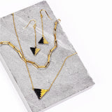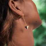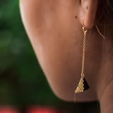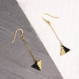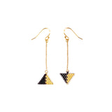 The Be Light Beaded Earrings are designed to bring hope and warmth to your life. They are hand-beaded using stunning 18K gold-plated stainless steel and black glass beads. The triangular pendants are 0.5" wide and hang on 1" 18K gold-plated stainless steel chains. The hooks are 18K gold-plated sterling silver.