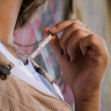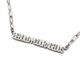 Eden's Be Bold and Courageous Necklace encourages the wearer to live boldly. The 1.75" wide stainless steel pendant features the words "Be bold + courageous" and is on a 20.25" stainless steel paperclip chain with a 1.3" extension.