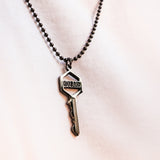 The Men's You Are the Key Necklace encourages the wearer to consider how they can be the key to freedom for those in slavery. The 1.2" long black hematite-plated stainless steel key has the words "You are" in the centre and hangs on a 24.5" bead chain.