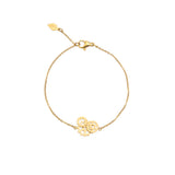 Stainless steel cog pendant bracelet. Available in natural and 18K gold-plated stainless steel and in 6.5" and 7" with 0.5" extension chain.