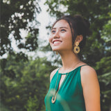 Eden's I Am Brave Drop Earrings embody Mya Mya's bravery by spelling out "I am brave" in Burmese in the design. The 1.6" and 0.8" diameter pendants come in natural, 18K gold-plated, and rose-gold plated stainless steel on 316 medical-grade stainless steel posts.