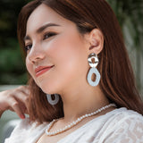 Stainless steel 2.6"H x 1"W earrings and posts with handmade polymer clay drop in white stone color. #E329D.
