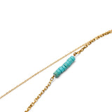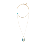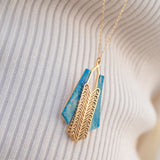 A layered necklace set featuring two complementary pieces: a 30” necklace with a 1.9” x 1.2” pendant accented with ocean-toned polymer clay, and a 17” rectangular-link chain adorned with genuine turquoise beads. Both include 1.3” extension chains and are crafted from 18K gold-plated stainless steel.