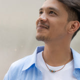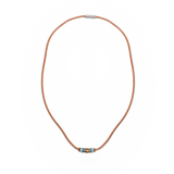 The Path of Promise Leather Necklace is crafted from genuine leather and features a stainless steel pendant with blue enamel wave detailing, paired with a wooden bead. It measures 22” in circumference and secures with a magnetic clasp.