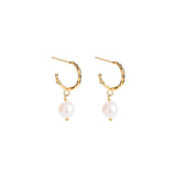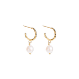Eden's Milk & Honey Hoop Earrings feature a stunning 0.4" oval freshwater pearl hanging from a 0.6" diameter 18K gold-plated 316 medical grade stainless steel hoop and post.
