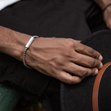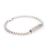 The 1" long pendant on Eden's Steps to Freedom Bracelet celebrates the steps David took to become free from human trafficking with engravings of the words "HOPE", "WAIT", "RISK", "SEEK", "CALL" and "FREE". This brushed stainless steel bracelet comes in 7.5" and 8.75".